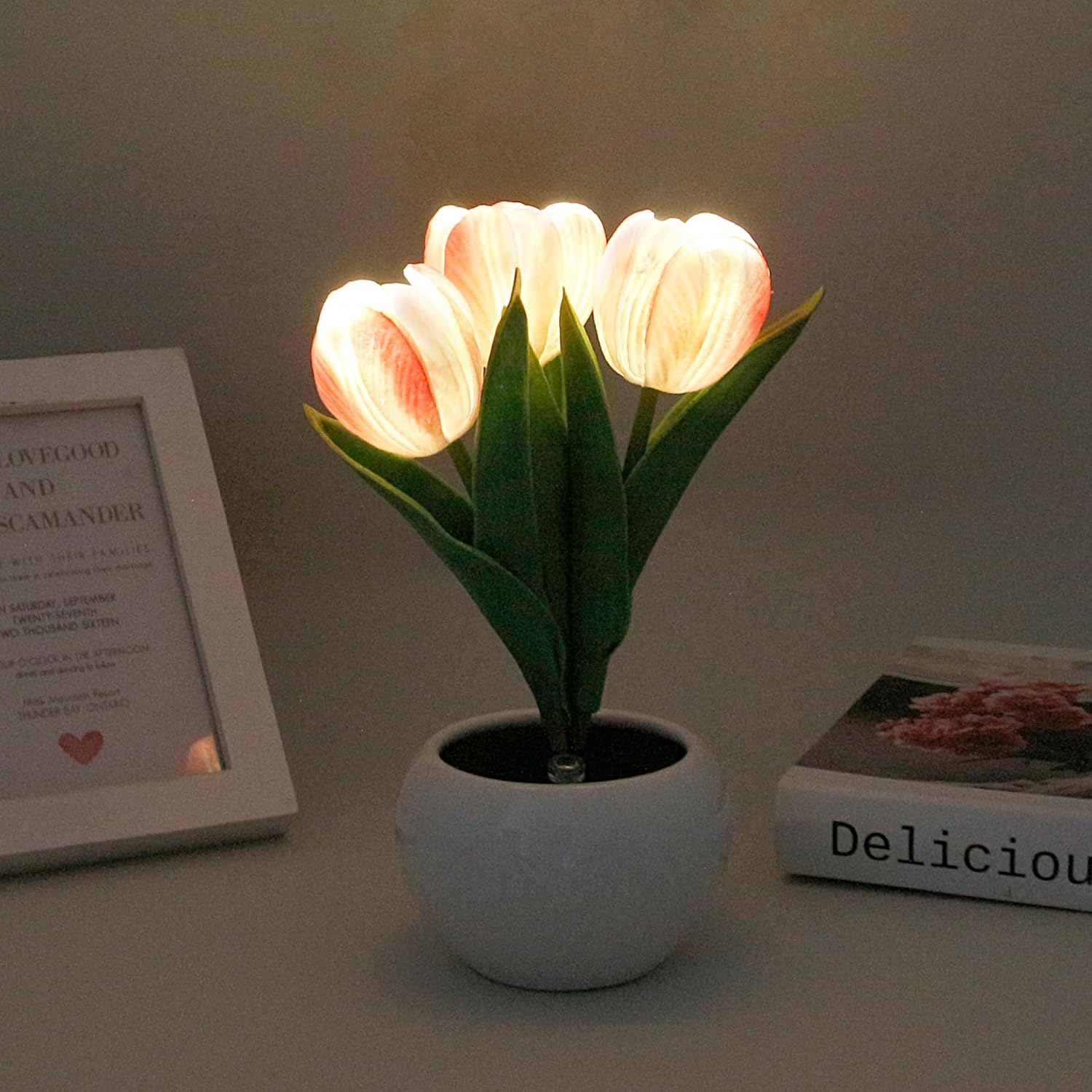 Внесете топлина и романтика във вашия дом с тази елегантна LED цветна лампа, която във формата на лалета създава нежен амбентен уют 🌷✨. Благодарение на захранването с батерии можете да я поставите навсякъде без нужда от кабели или контакт, което решава проблема с ограниченото разположение на осветлението.